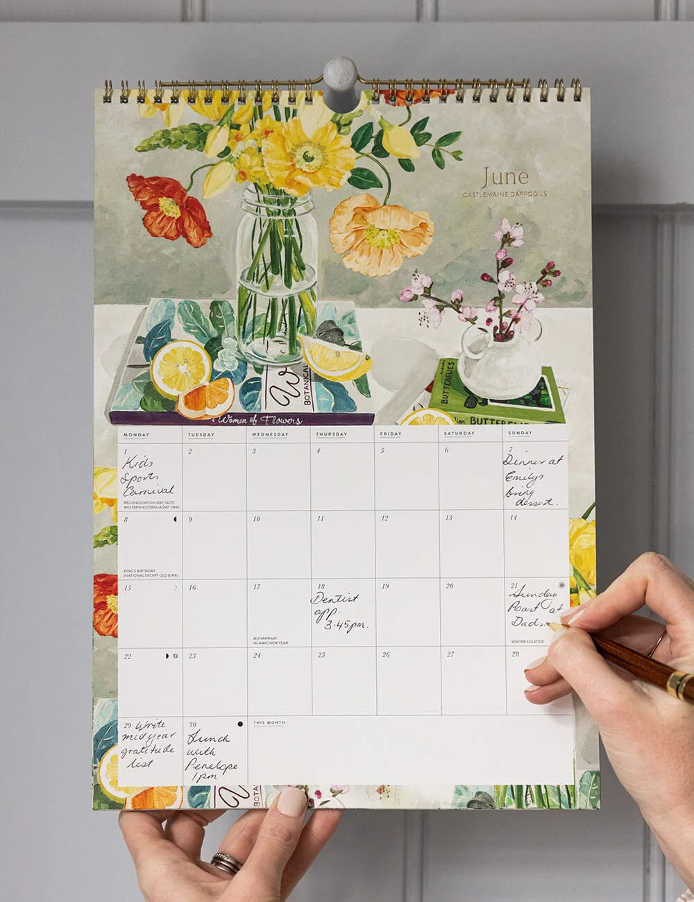 Our new beautiful 2026 Wall Calendar features beautiful heavy weight stock, gold foil printed covers, gold wire binding, gold gilded edges and an appointed monthly view calendar. Featuring Australian Public School holidays, and gold foil text on each Calendar Page.