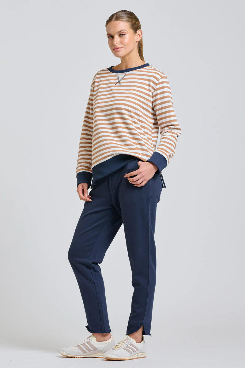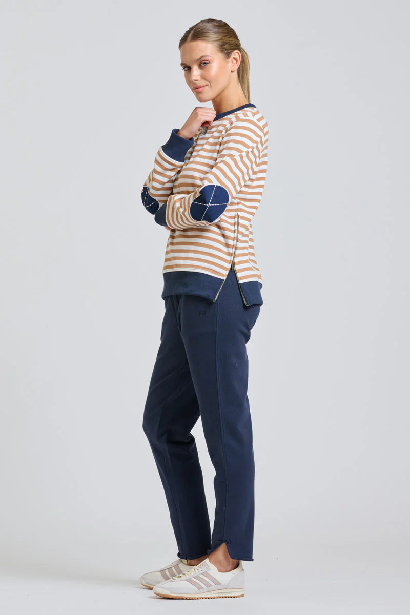 Your favorite EST style is back, in classic stripes with fun collar, cuff, hem and elbow patch contrast trims!