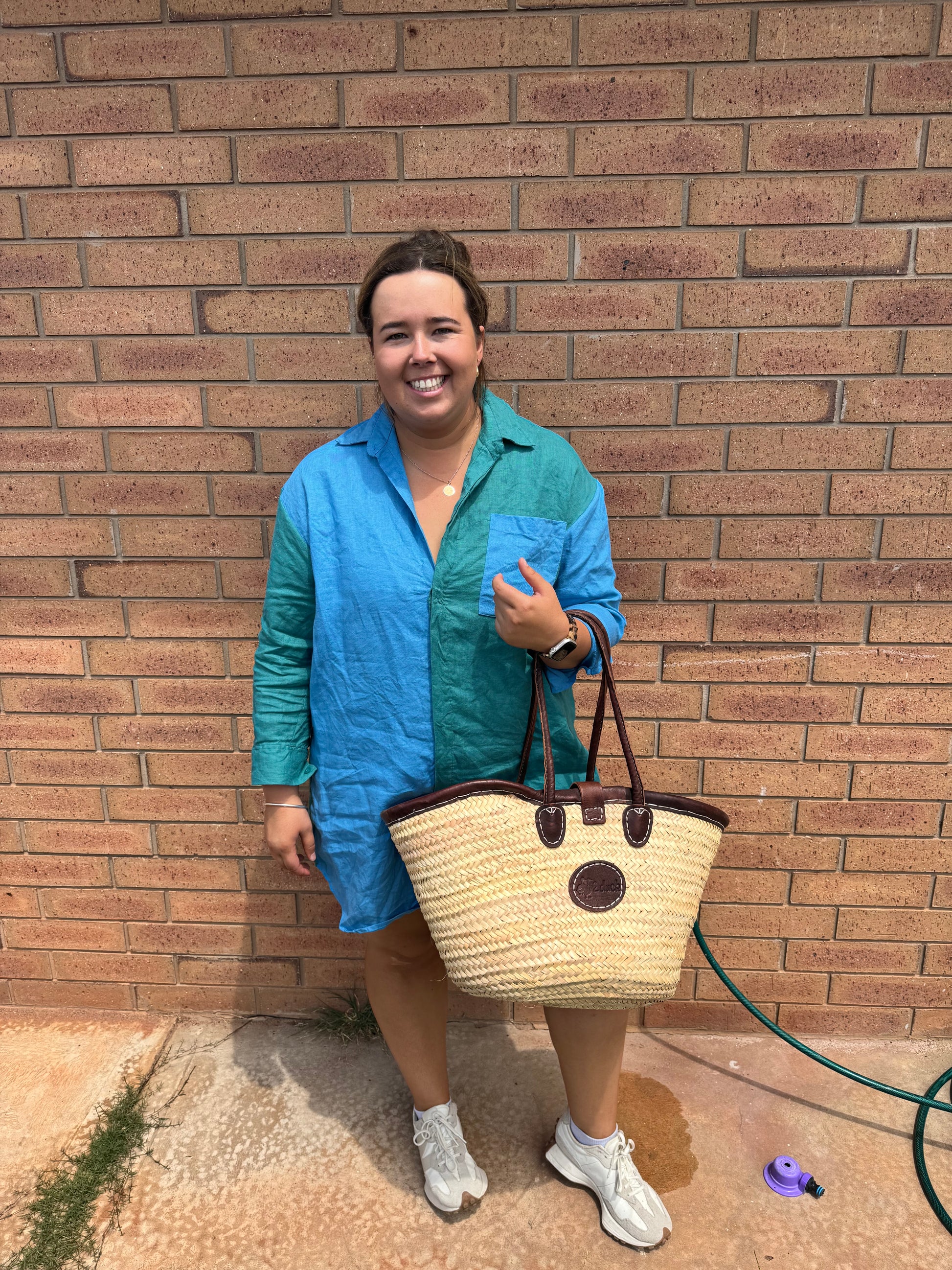 LOLA & ME // Linen Two Tone Shirt Dress - Teal/Green